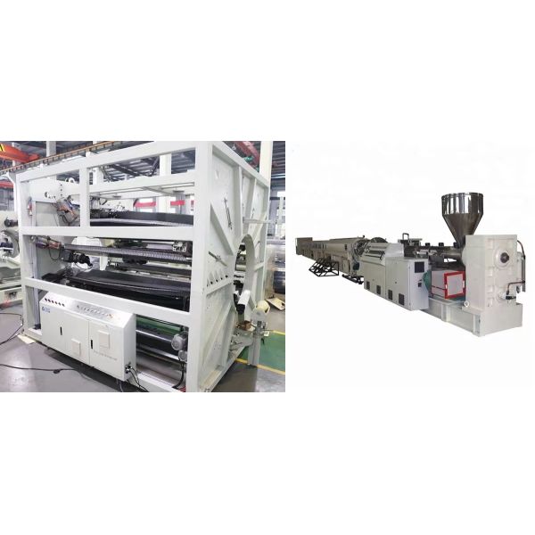 The high efficiency extruder is designed for HDPE pipes, equipped with reducer which obtain the high speed and low noise, feeding section with cooling unit and reversing spiral groove, different pitch undulant screw which allows great output, lower melting temperature, and lower energy consumption.