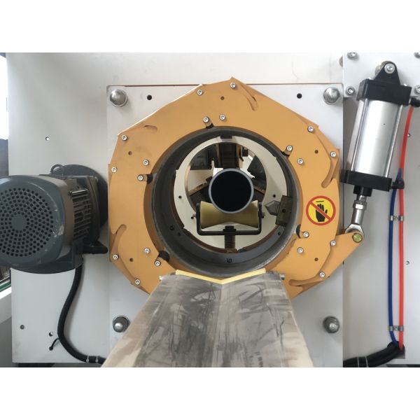 The pipe cutter machine cuts PE pipe to the desired length programed into the HMI.