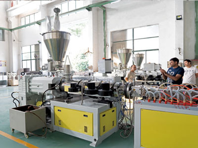 The screws are specifically designed and manufactured for the processing of dry pvc powder blend. Our conical twin screw extruder design cater to the raw materials feature ensuring homogeneous mixture, better plastification and conveying efficiency. The permanent magnet synchronous motor provide high energy efficiency for the extruder. Equipped with PLC control system, it realized controlling the whole production line in the one site.